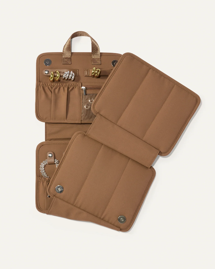 I never travel without a fold-up jewelry case because it effectively protects my jewelry from being crushed or tangled in transit. And this design from Jenny Bird has tons of packing space — thanks to flat pockets, pouches, earring and ring holders — while being super sleek and compact. Plus, the handy handle can hook on doors when there’s simply not enough hotel room shelving space.