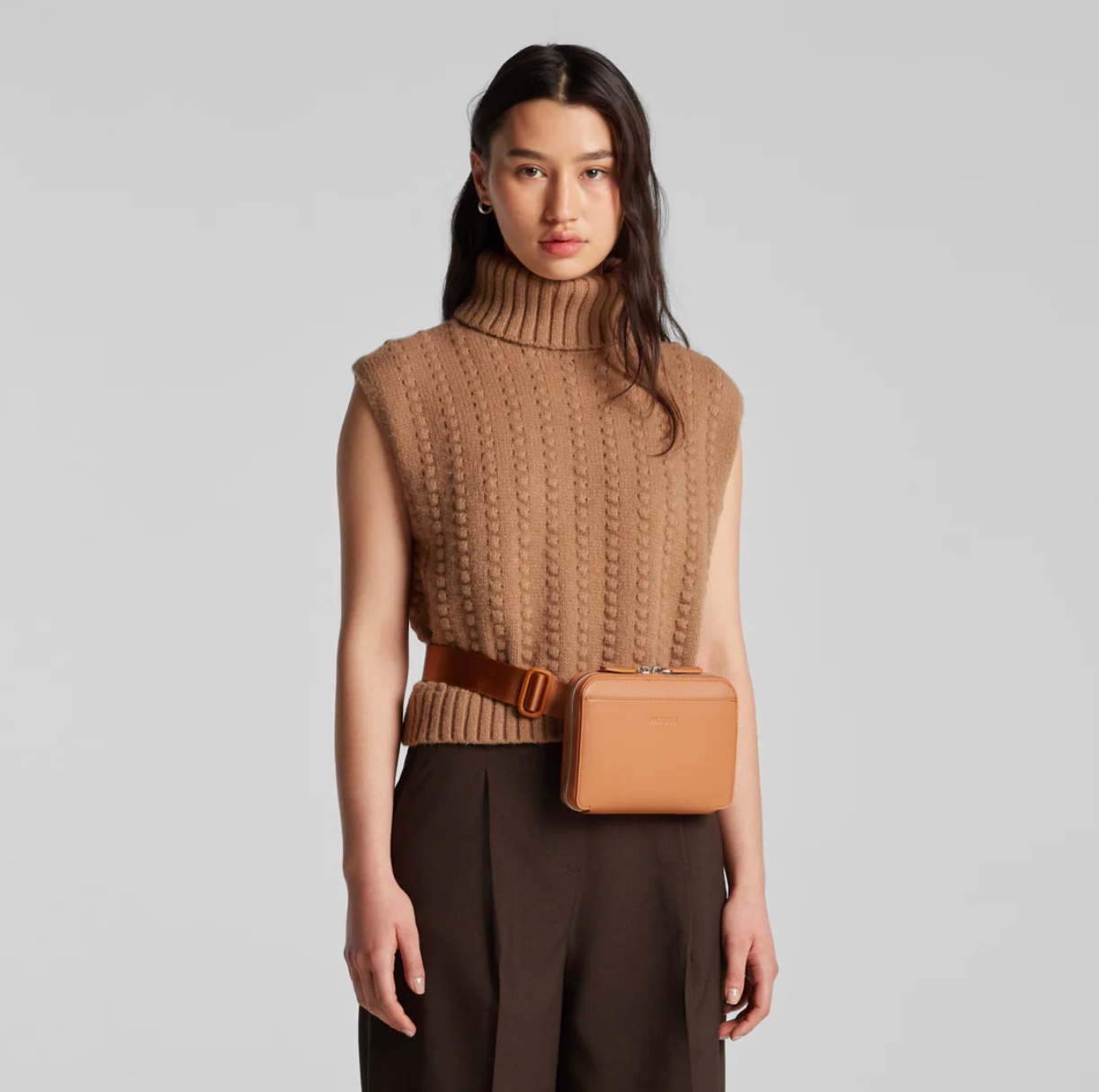 We need to highlight this vegan leather bag that can be worn as a fanny pack or crossbody because it can also be hooked onto several other Monos bags and accessories like the laptop sleeve, backpack, and duffle bag, making it a versatile and thoughtful gift.