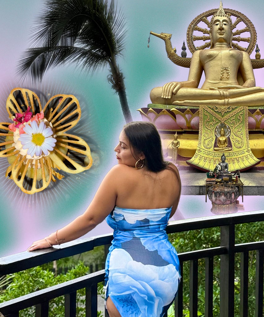 About an hour and a half later, when we arrived at our final destination, we were still spooked by the mysterious speed of time. But we laughed it off and were determined to return to scheduled programming. It was morningtime in Koh Samui, and we were ready to dip into the pale jade waters of Chaweng Beach and take photos in flowy dresses at the jungle-themed Songbird Lounge at our resort, Anantara Lawana Koh Samui, where scenes from White Lotus Season 3 were filmed. Except my friend’s checked luggage didn’t make it with us. Apparently, her suitcase was stuck somewhere in Singapore and we were told it would be located and delivered to our resort by the end of the day. But by then, we’d have lost the sunlight for the beach and the photos.