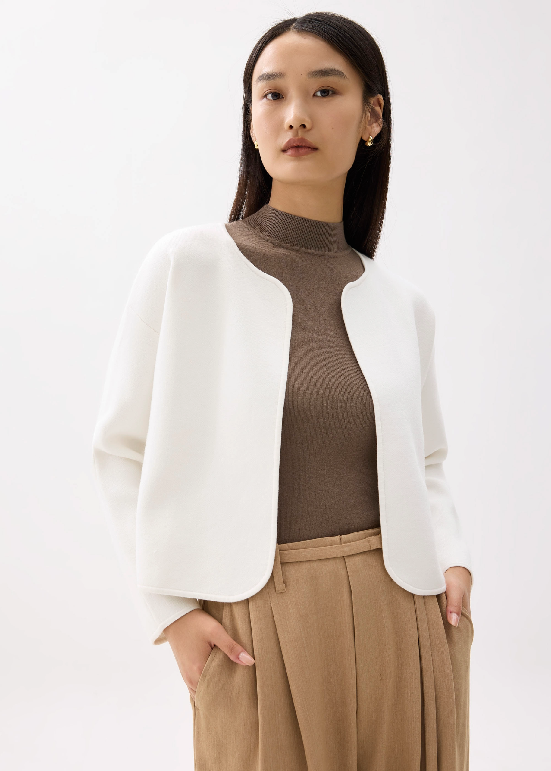Quince Mongolian Cashmere Boxy Cropped Cardigan Sweater, $, available at Quince