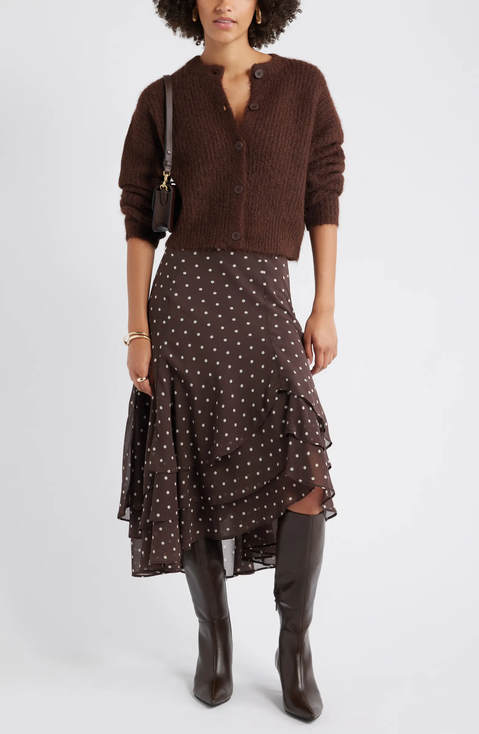 Brown is in this season — why not incorporate it into your wardrobe via a cardigan?