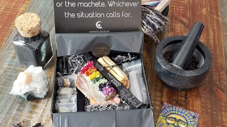 With her Bruja boxes, Martinez makes it easy to bring this ritual work into your life. The Ultimate Money & Abundance Manifestation Box, for instance, includes items like Pyrite, Citrine, Green Aventurine, Tiger’s Eye, a Selenite wand, Seven Chakra white sage, Palo Santo, copal incense, a natural Lion’s Paw shell, apothecary matches, a gemstone bracelet, a tarot card, and a mantra card. Each of these pieces is believed to attract prosperity, abundance, good fortune, and harmony, helping you manifest wealth and positive energy for yourself and your home.