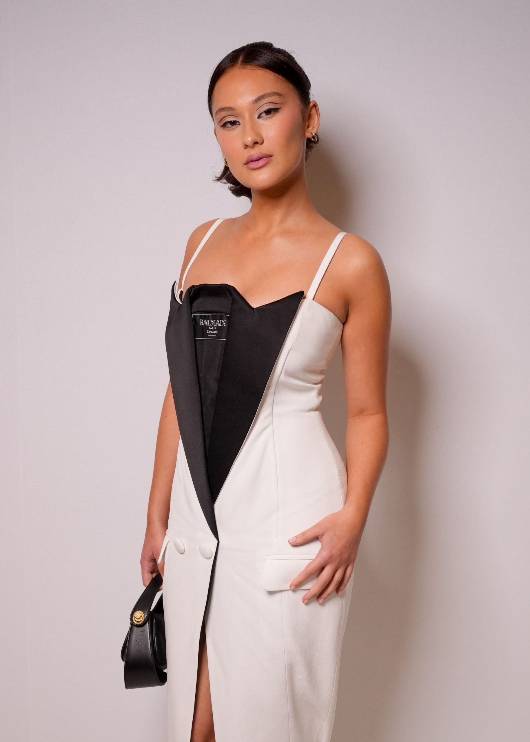This gorgeous, 60s-inspired high pony worked perfectly with the actor’s dainty, mod-liner and black and white Balmain dress. Celebrity hair artist Clara Leopard created this look for the Balmain RTW Spring 2025 show at the Paris Ready to Wear Fashion Week in 2025.Photo by Swan Gallet/WWD & Getty Images.
