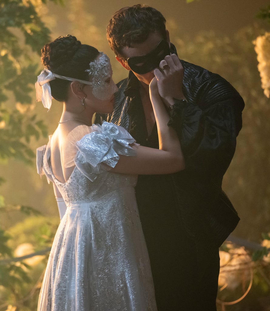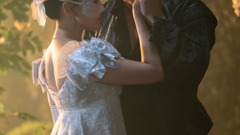 Here’s what we know from the season’s official logline: “The fourth season of Bridgerton turns its focus to bohemian second son Benedict (Luke Thompson). Despite his elder and younger brothers both being happily married, Benedict is loath to settle down — until he meets a captivating Lady in Silver at his mother’s masquerade ball.” In a teaser clip released from the season, we learn that the mysterious Lady in Silver is Sophie Baek (Yerin Ha) and when they meet at Lady Bridgerton’s famed masquerade ball, Benedict is immediately down bad. In this Cinderella story, Benedict (with the reluctant help of his sister Eloise), sets out to find his masked lady. The twist: Sophie is actually a maid working for the lady of the house, Araminta Gun (Katie Leung).